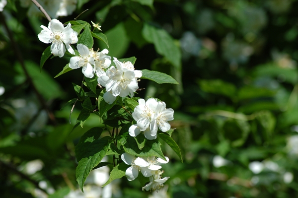 その横には、真っ白で花の大きなバイカウツギが咲いています。