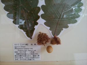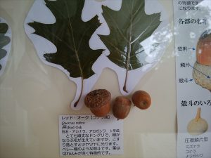 ドングリは葉っぱも一緒に展示してますので、木を探すのに役立つかも!