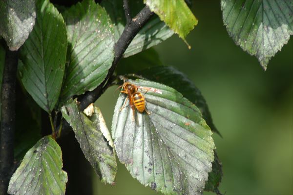 もしスズメバチに遭遇した際は、大声を出さず、大きな身振りではらいのけたりせず、