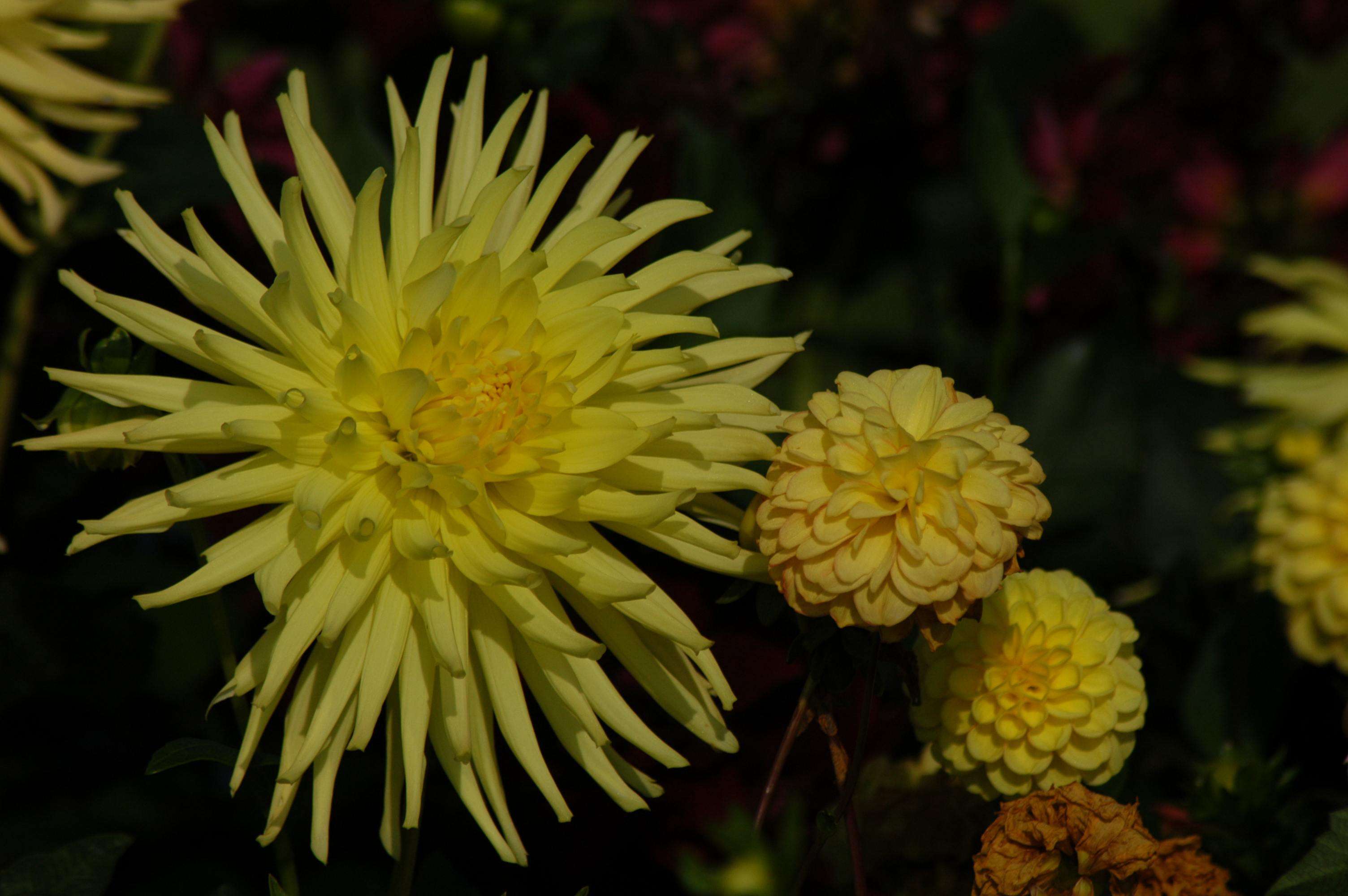 そんな寒さが深まる今日この頃ですが、管理事務所横と時計塔の下のダリアたちがとてもきれいに咲いています。今日はダリアの写真をアップしていきます。