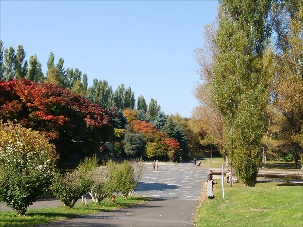 色づいているところだけをピックアップしたので、園内の紅葉がかなりすすんでいるように見えますが、