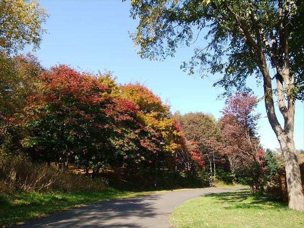 白樺林を過ぎ、カナール方面に向かうところ。ヤマモミジとイタヤカエデ。