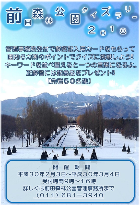 今週末の2月3日より、前田森林公園クイズラリーをはじめます。