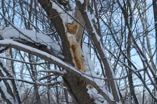 これはクマゲラがあけたであろう大きな穴。ここまで大きくなっているので、結構かよって来ているようです。