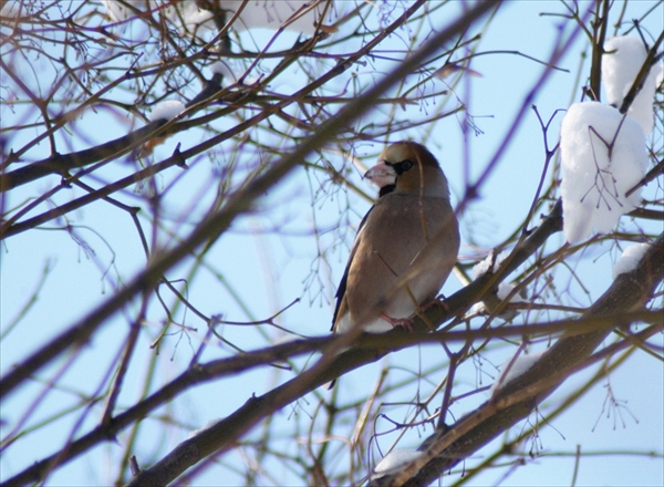 シメもいました。太いくちばしに、カラ類よりも少し大きめの体なのでこれも見つけやすいです。