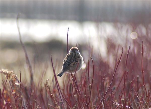 春になり、管理事務所そばに営巣しているスズメたちが賑やかです。
