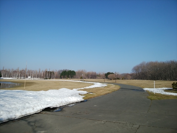 園内の芝地や林の中には雪が残っていますが、主な園路はすっかり溶けています。