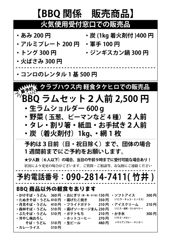 「バーベキュー広場」という頁でご説明しておりますが、 今年度用のチラシを作りましたのでご紹介します。