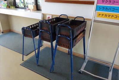 土日など、常設炉がすべてうまっている場合は、500円のレンタルコンロをご利用ください。網やトングなどの販売もあります。