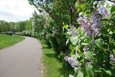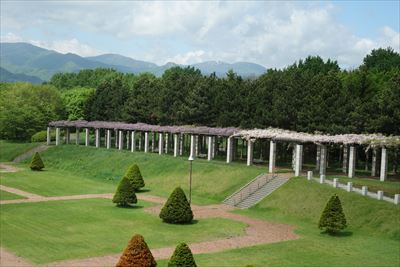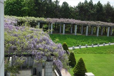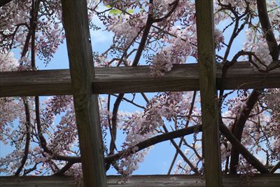 場所は変わって、ライラックが中央に植栽されている園路を通り新川駐車場のそばにある藤棚へ