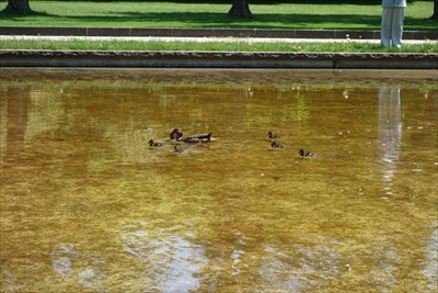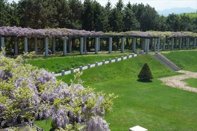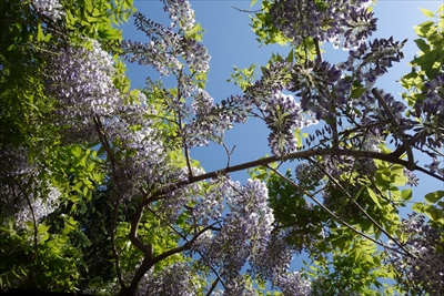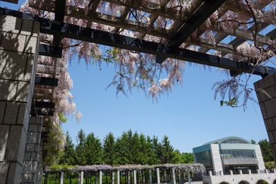 1日中晴れ間が広がる前田森林公園では、現在フジが見頃を迎えています。 暖かく心地よい風に、フジのすがすがしい香りがただよってきます。 左側から展望ラウンジに向かって。 展望ラウンジ2階の左側から見下ろして。今日はラウンジの売店も大盛況でした! 日当たりの良いところでは、花穂のほとんどが開花していました。 カナールにはカモの親子がすいすい。 こちらは、新川駐車場付近のフジ棚です。 近くで撮影できるので、ひそかなおすすめですよ。 見頃のうちに、ぜひ前田森林公園へお越しください!