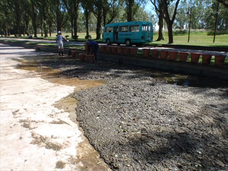 午後に排水の部分の仕上げをしまして、カナールに注水しました。