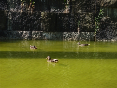 カモは壁泉側に移動してすいすい泳いでいますのでご安心ください。