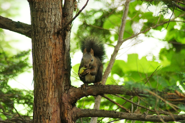 園内のエゾリスも、オニグルミの実を集め始めています。