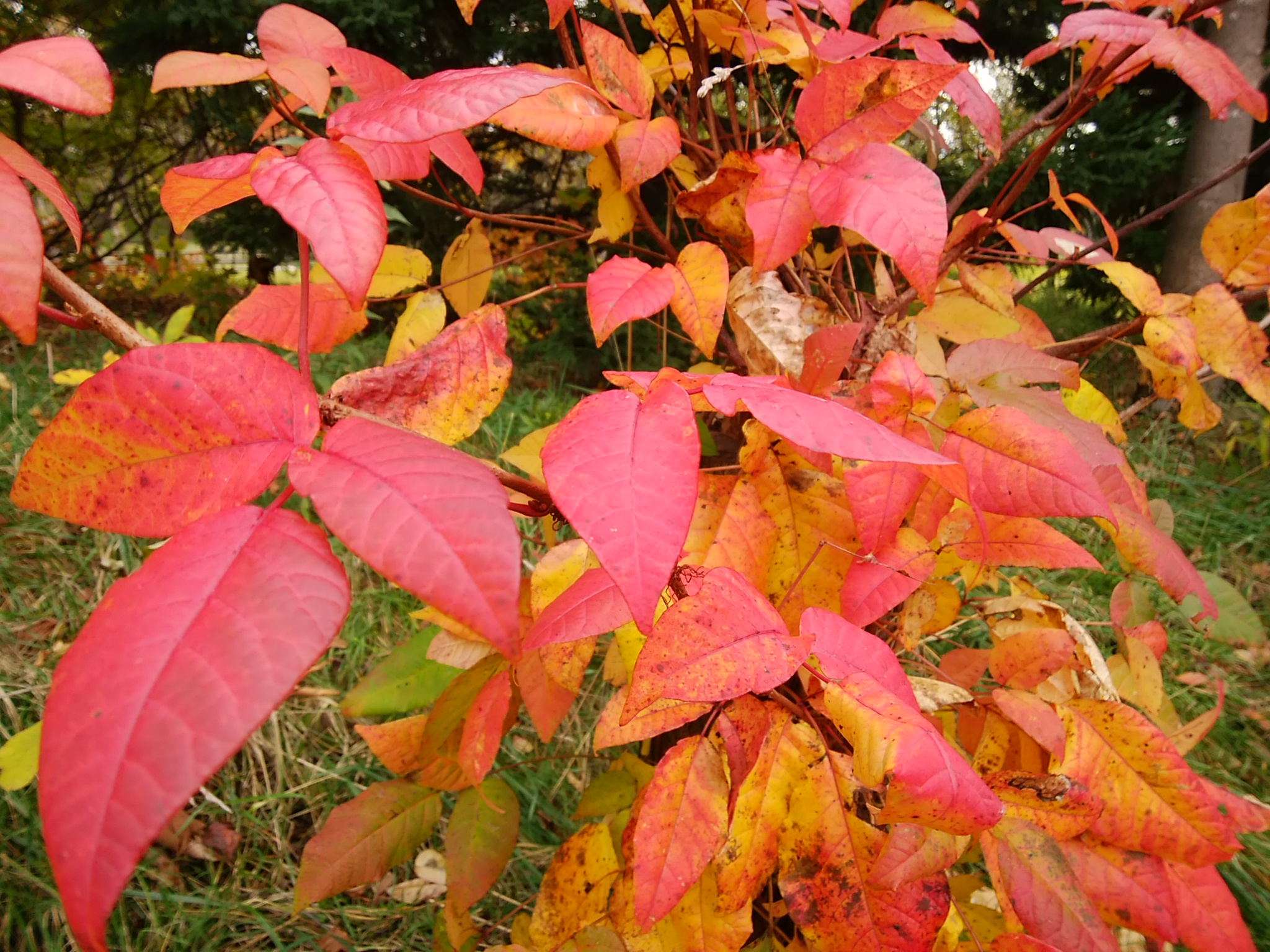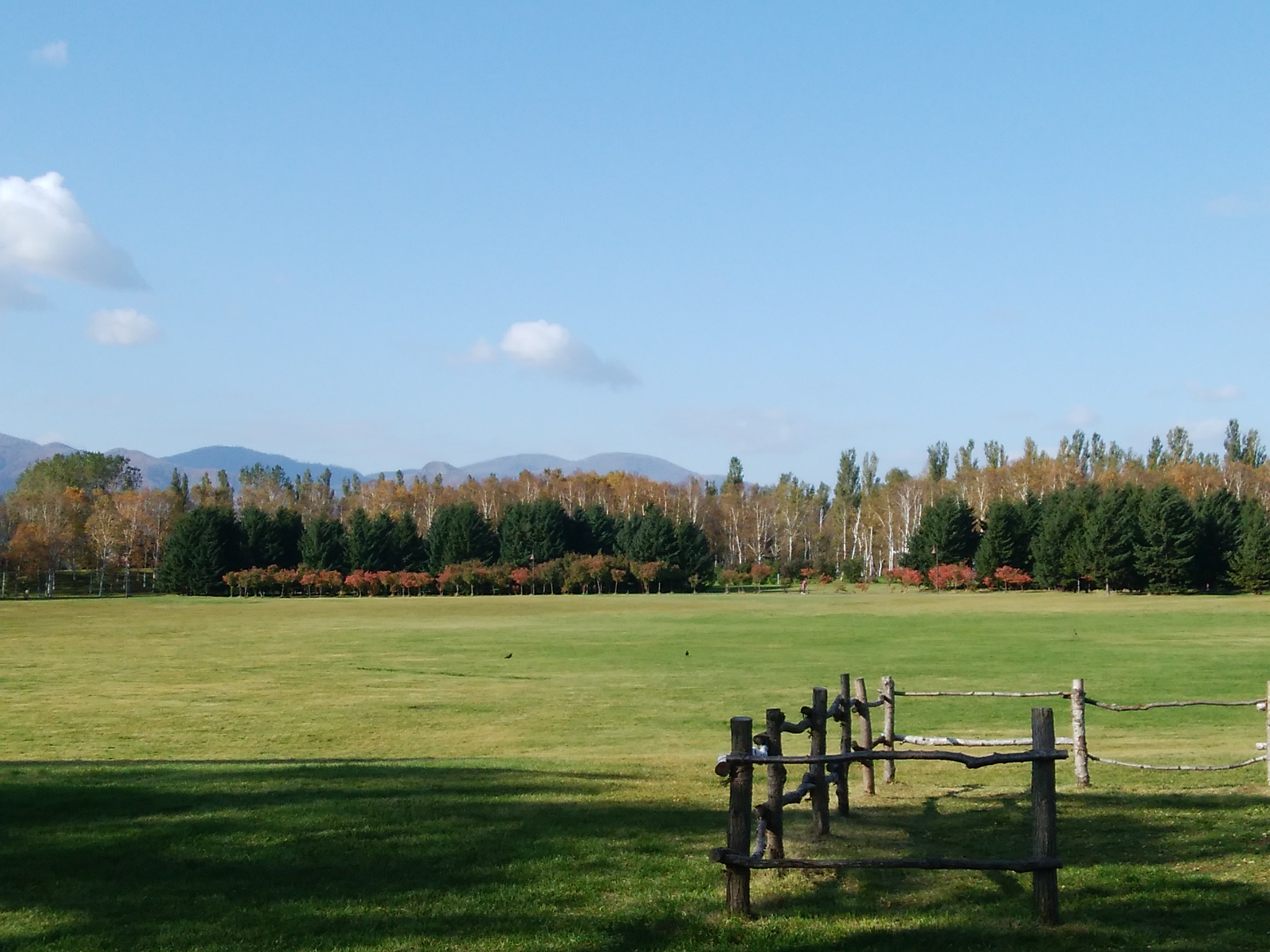 9月の台風により、かなり葉が落ちてしまった園内。 そういえば今年は、猛暑の後で長雨……などを繰り返したせいか、 かなり葉が痛んでいました。 そのためか、今年の紅葉は少し寂しいかもしれません。 黄葉がきれいなネグンドカエデもかなり倒れてしまいましたし……。 そんな園内ですが、ちらほら色づいてきております。 芝生広場のそばにあるエゾヤマザクラの紅葉も進んでいます。針葉樹の前にある彩り、わかりますか? 今週末は雨予報ですが、もしお天気が良ければ散策にお越しください。