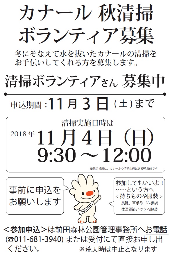 カナール清掃のボランティア申し込みは、本日11月3日までです。また、クリーンボランティアに興味のある方もぜひお問い合わせくださいね。