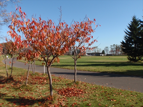 さて、園内の木々は紅葉から落葉へとすすんでいます。サクラの木から葉がハラハラと。