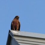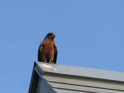 トンビ。パークゴルフ場のクラブハウスの屋根の上で。