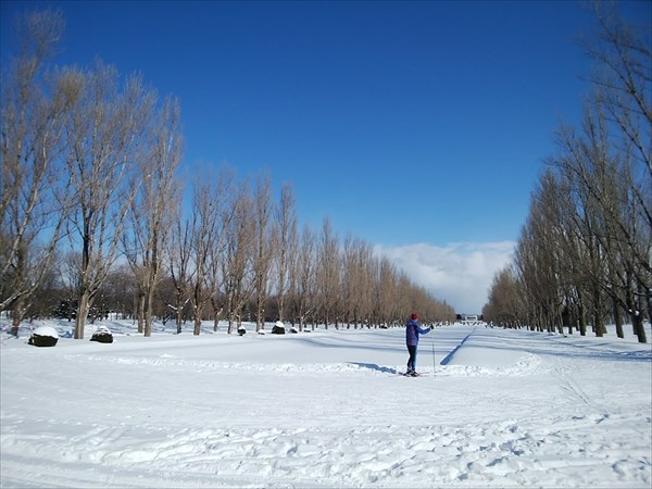 カナールをぐるりと回るスキーのスケーティングコースに佇む男性。