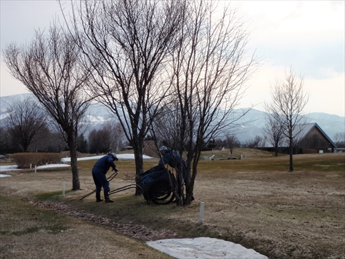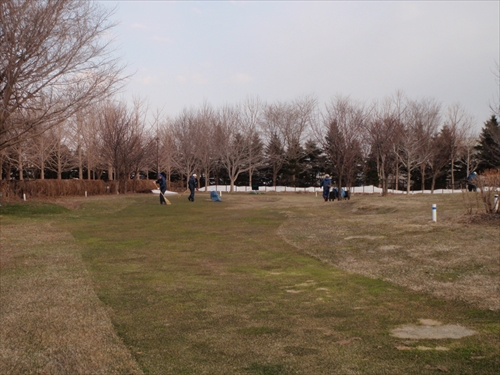 もう道路はほとんど雪がとけているから、パークゴルフも今年は早くできるのでは?なんて思ってしまいますが、昨日の時点でグリーン上にはまだ雪が残っていました。