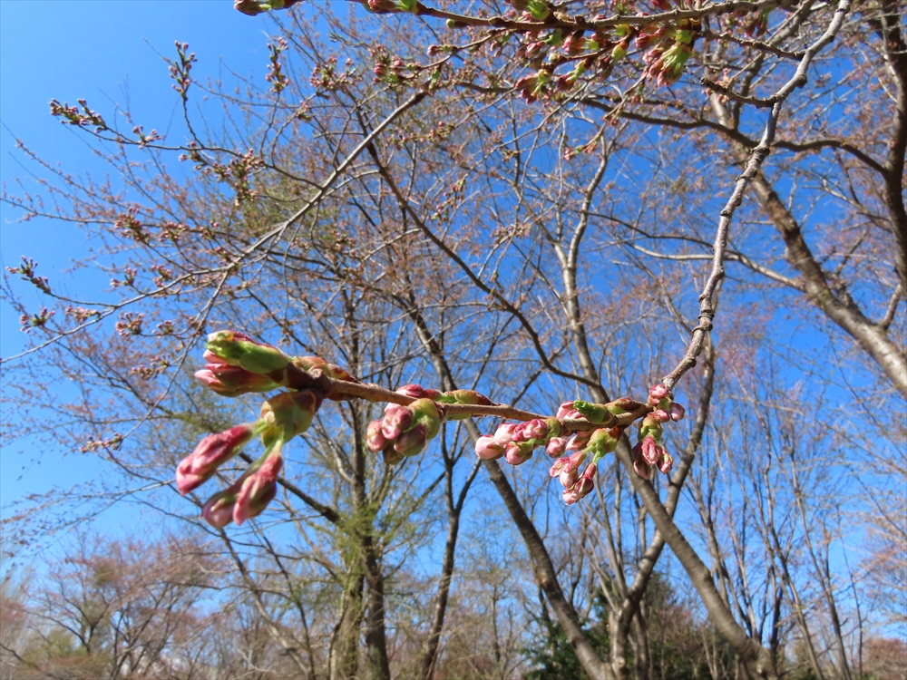 ソメイヨシノのつぼみのアップ。5月に入ってから開花しそうです。