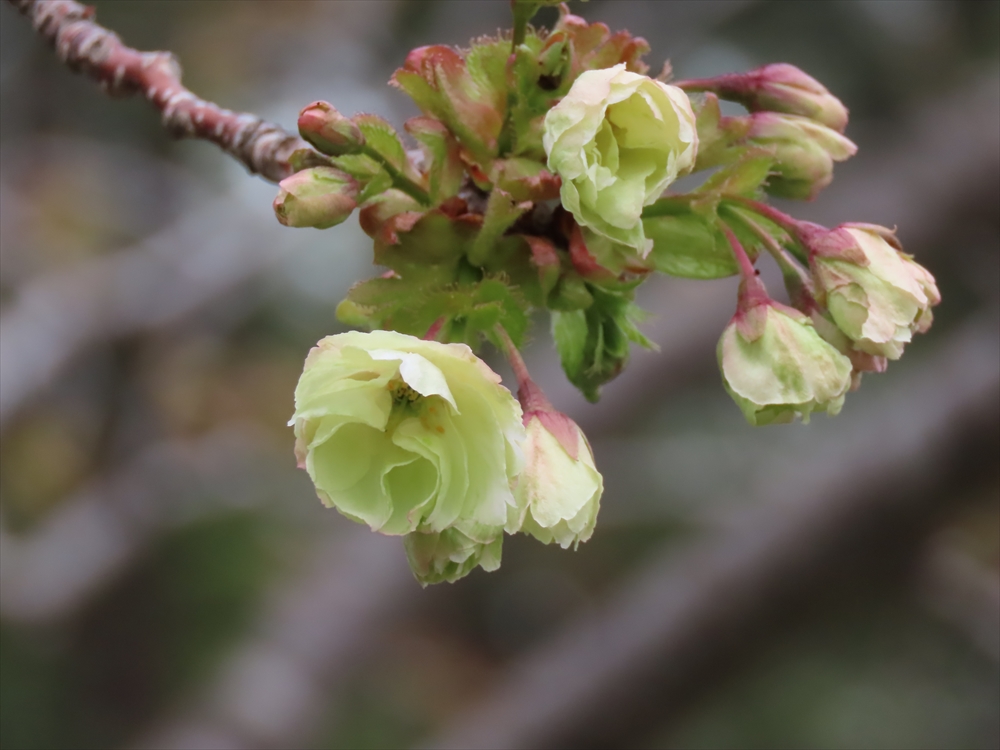ギョイコウそばにある八重桜、カンザン(関山)のつぼみも、濃いピンク色になってきました。