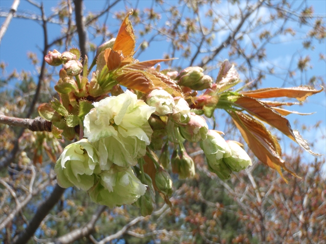 昨日のブログでもお知らせいたしましたが、野球場のそばにあるギョイコウという八重のサクラがぽつりぽつりと咲き始めています。
