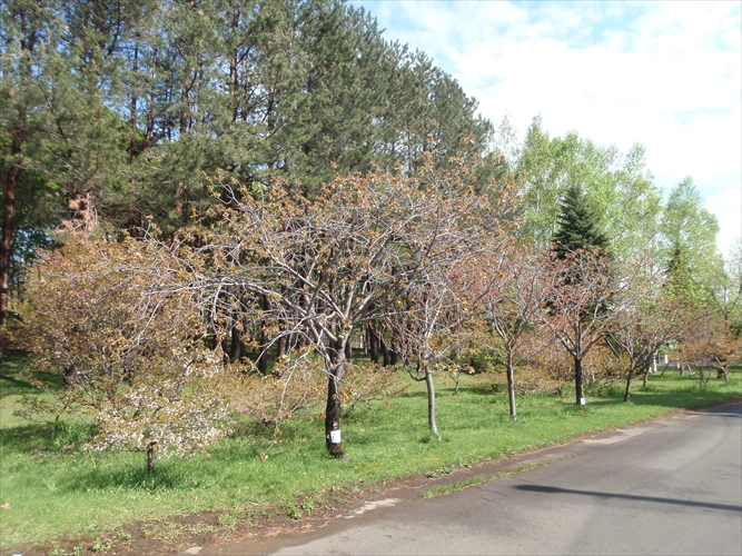 ギョイコウの隣の背の低いチシマザクラは、散り始めていました。