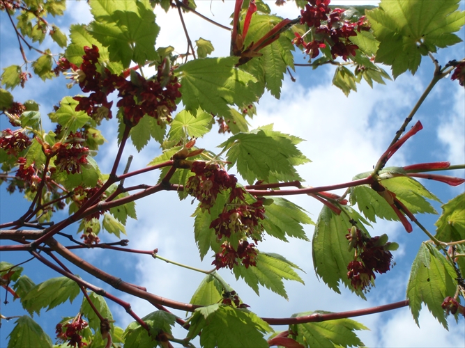 派手さはありませんが、ハウチワカエデがひっそり赤い花をつけていました。