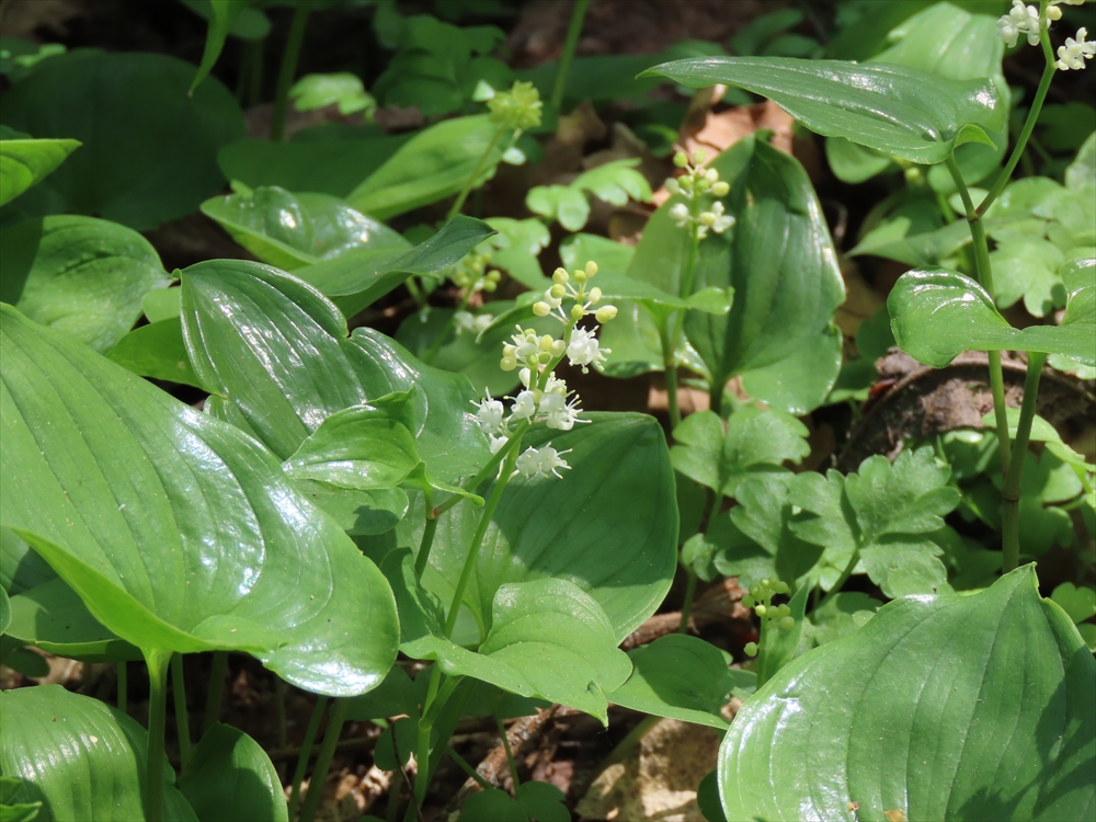 山野草では、マイヅルソウが咲き始めました。とても小さな花ですがたたずまいが素敵です。