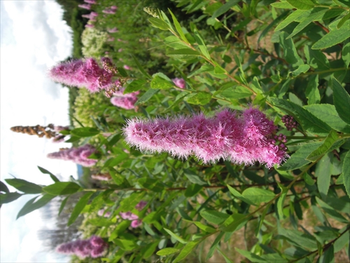 花木園で咲いているしっぽのようなピンクの花は、このホザキシモツケです。