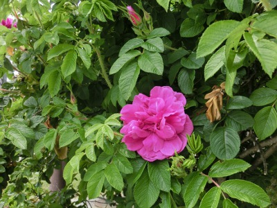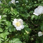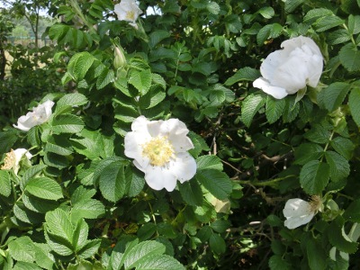↑ハマナス、八重、白花。同じバラ属でもハイブリッドティーなどの豪華さはありませんが、病気や虫にも負けない頼もしいヤツらです^^v