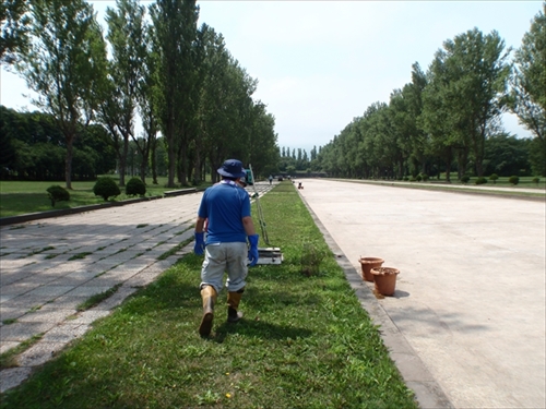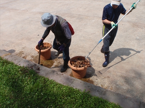 すでにカナール内の水は排水してあり、溝にたまっている落ち葉やドロを集めて流す作業がメインです。