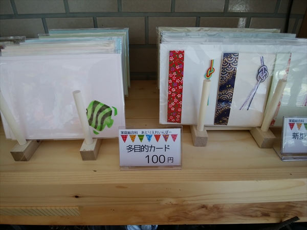 家庭総合課さんからは、カードケース、ポケットティッシュケース、カード、新型ぽち袋が。