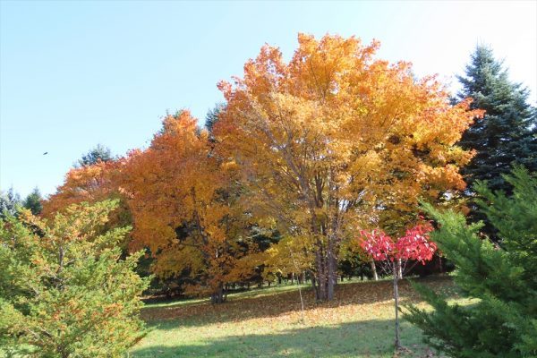 このままの気候で行くと、紅葉の見ごろは今日から今週末がモミジやカエデ類がきれいな第一弾。今週末から来週末が、ポプラも黄葉する第二弾の見ごろかと思います。ただ、季節ものは天候にかなり左右されますので、今後もブログで紅葉状態をご紹介いたします。