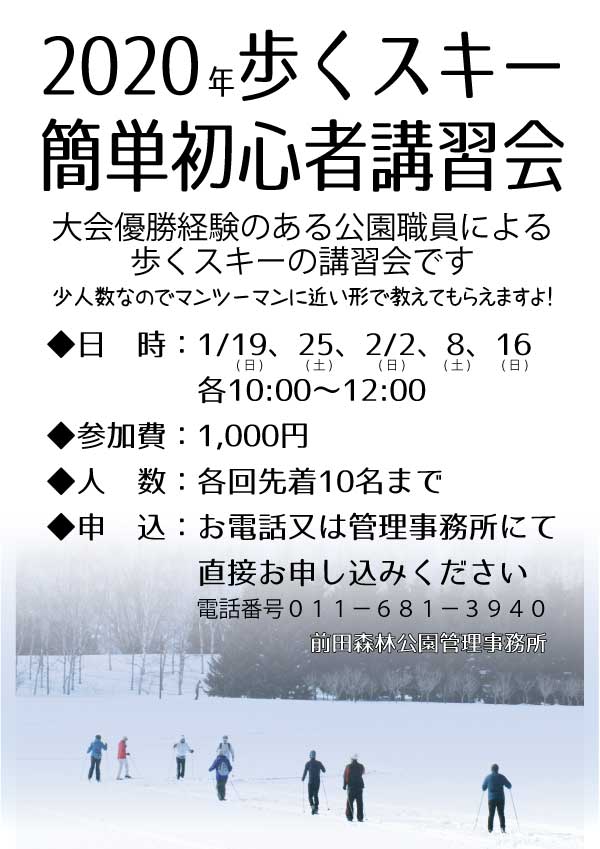 さて、今日は2020年1月19日以降の、歩くスキー講習会のお知らせです。