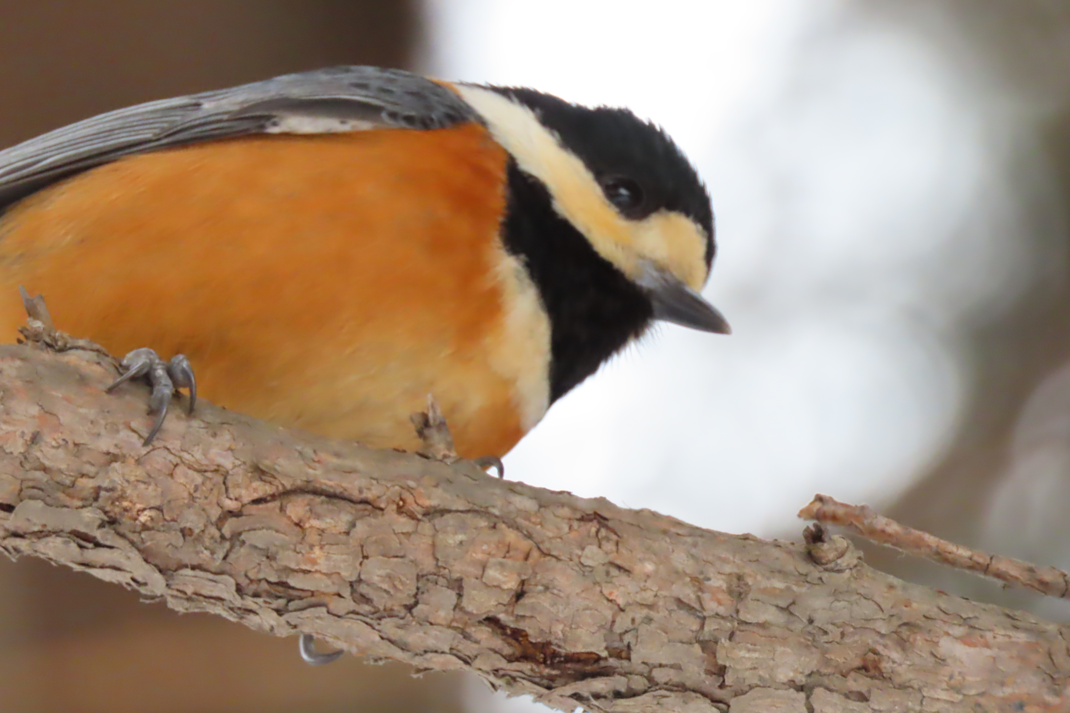 カラ類はいつも見かけることのできる留鳥ですが、冬場は木々の葉が無い分観察しやすいです。こちらは今日見たゴジュウカラ。