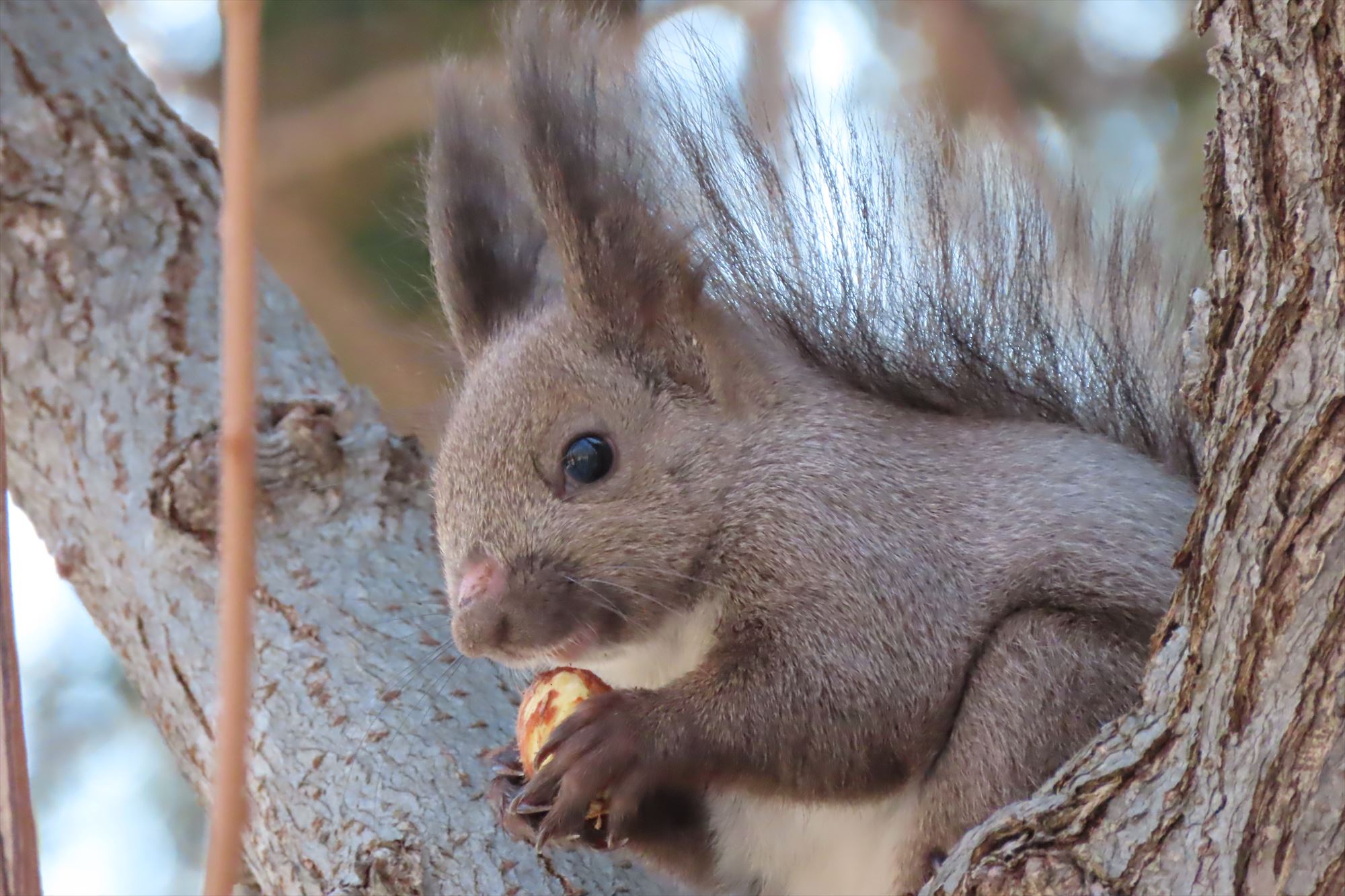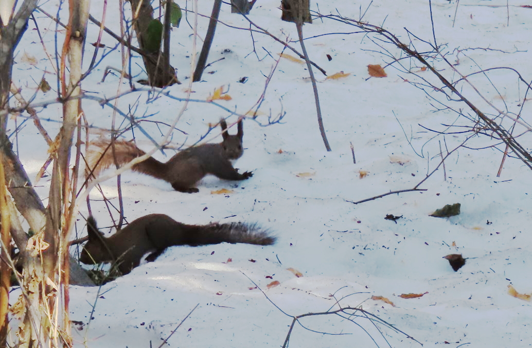 今日会えた子たちは秋に埋めていたドングリを掘り起こして食べていました。