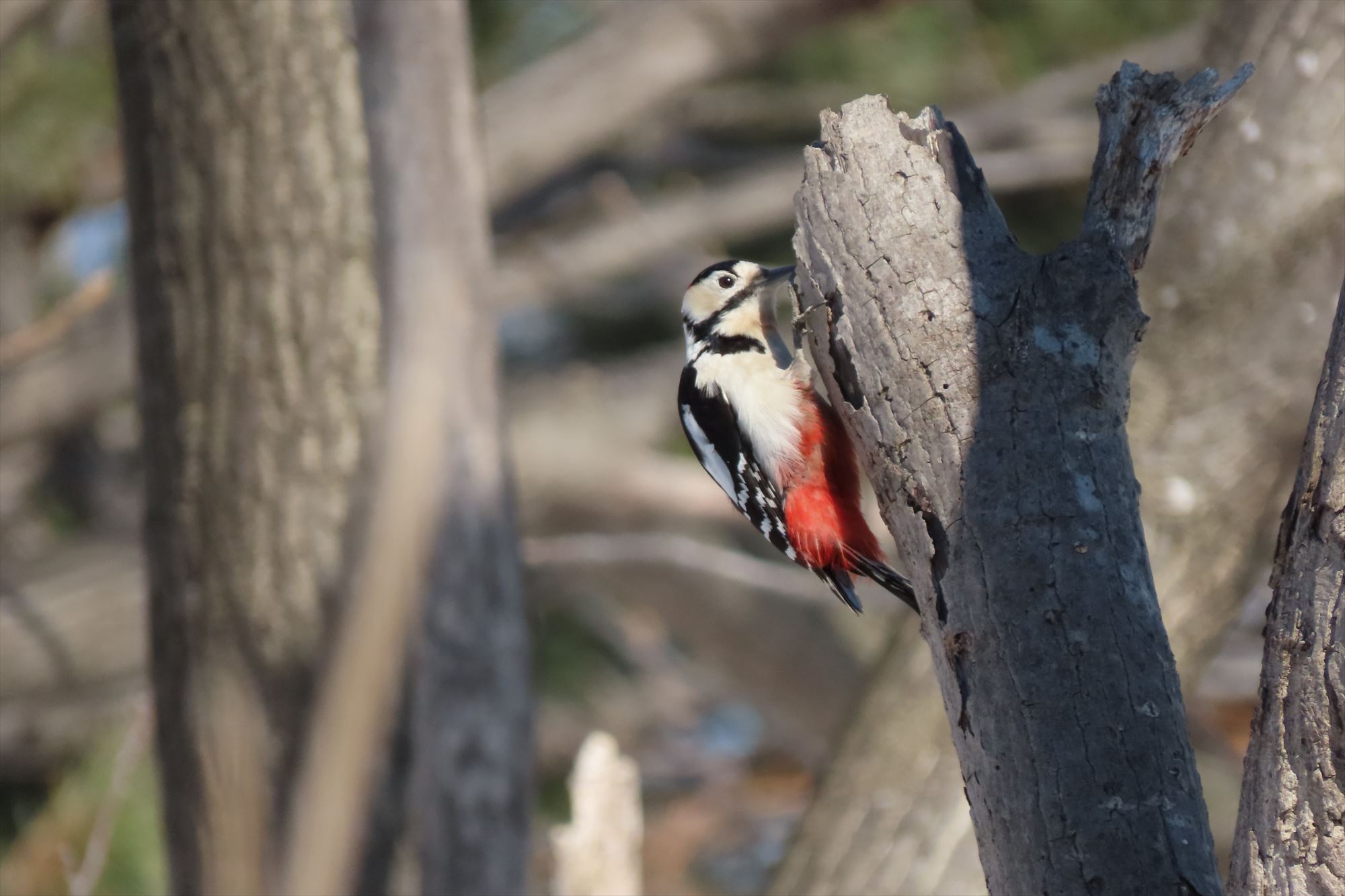 陽気に誘われて、生き物たちが活発になっています。こちらはアカゲラのオス。大きなドラミングの音がする方を見ればすぐに見つかります。