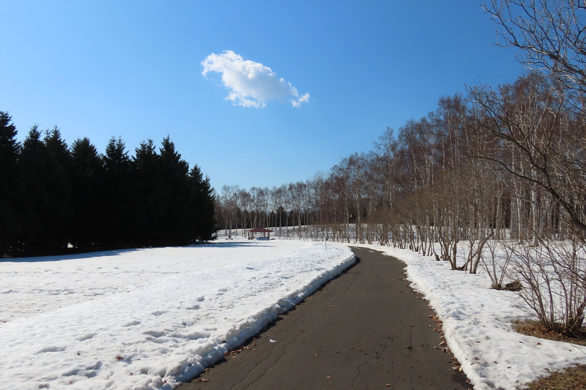 園内の雪解けは、例年より少し早めのよう。園路の雪割も進み、歩きやすい場所が増えています。