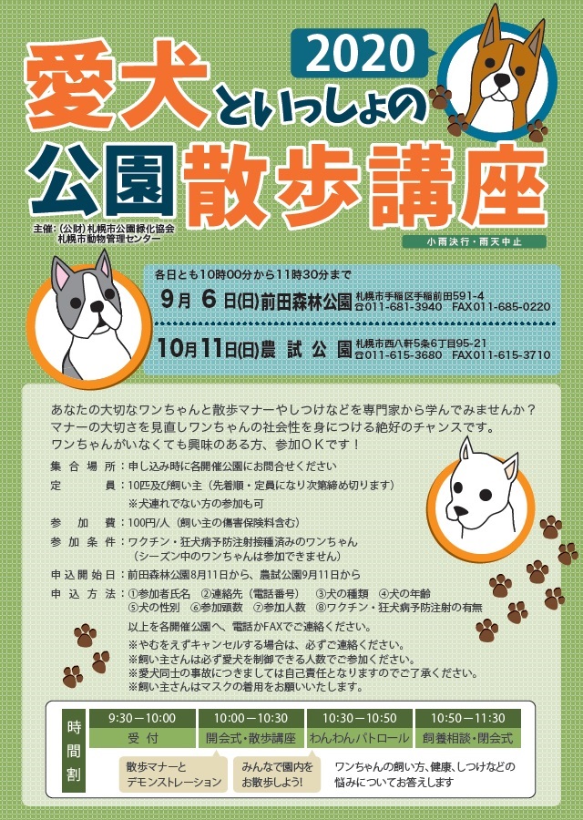 9月6日日曜日に前田森林公園にて、愛犬といっしょの公園散歩講座を開催いたします。