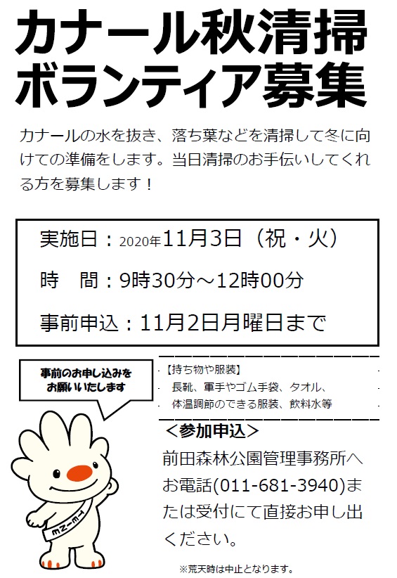 今年も「秋のカナール清掃ボランティアさん募集」の時期がやってきました。