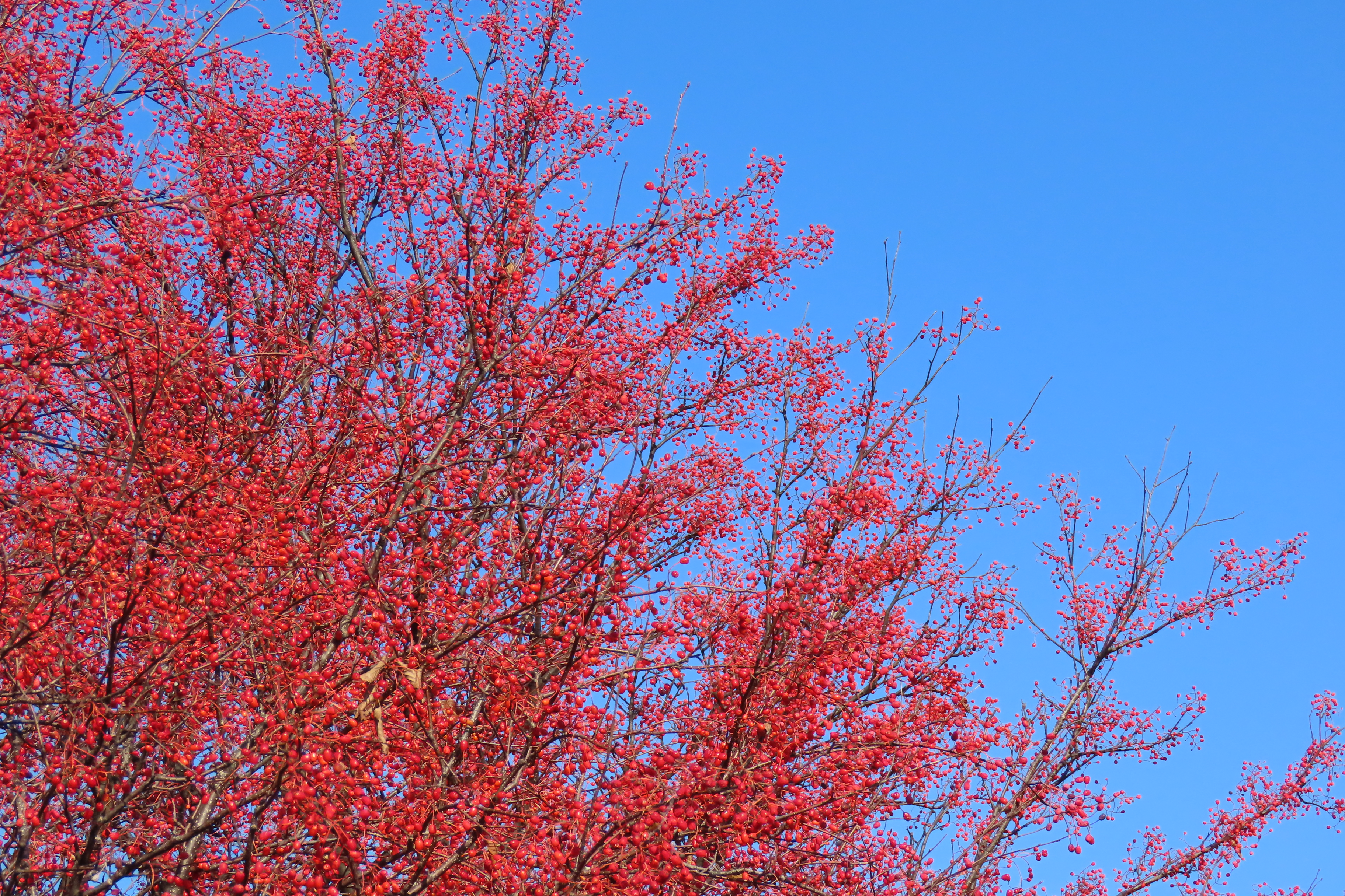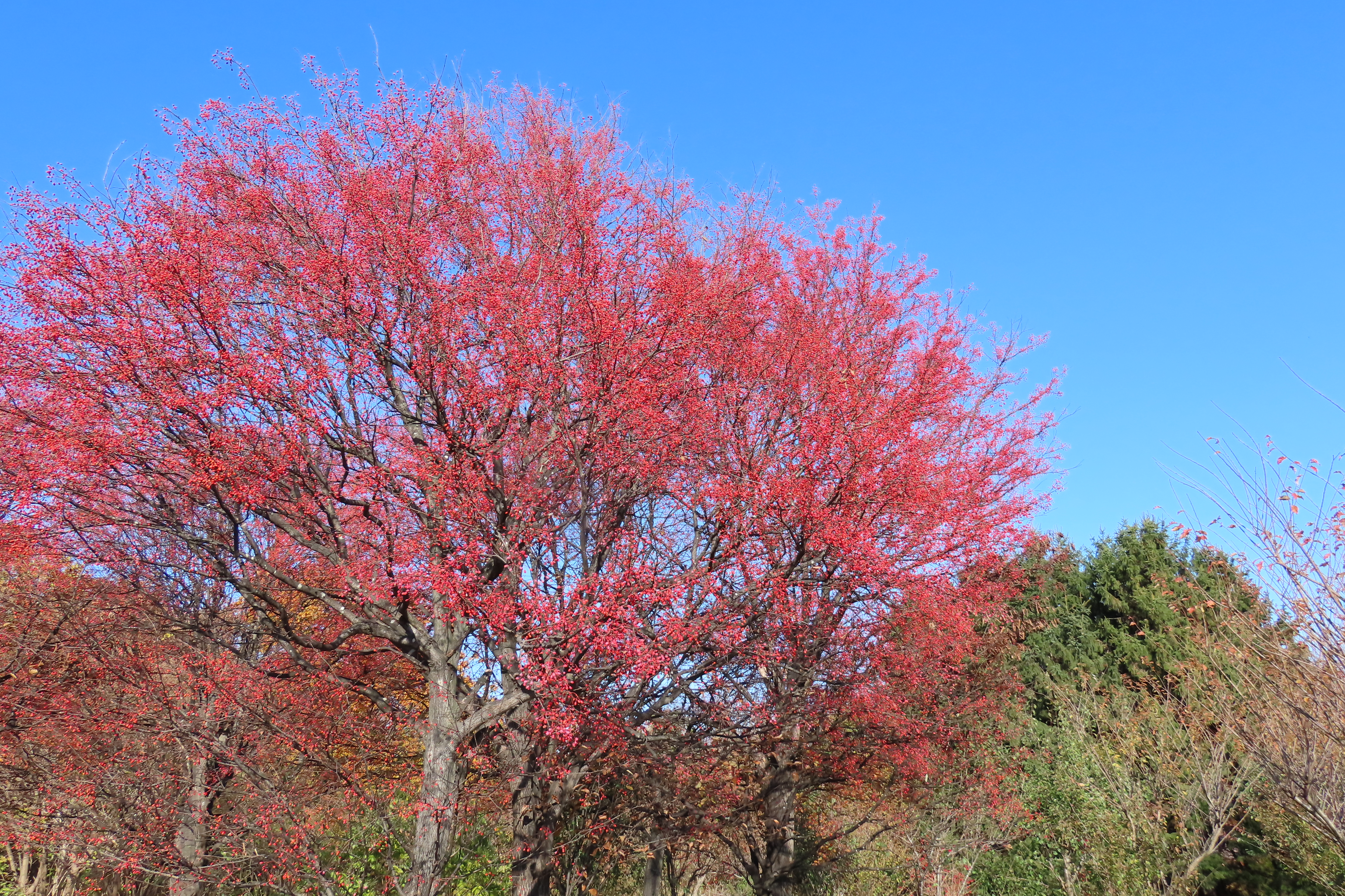 園内の葉も落ちはじめ、今は真っ赤な実が良く目立っています。こちらはアズキナシの木。