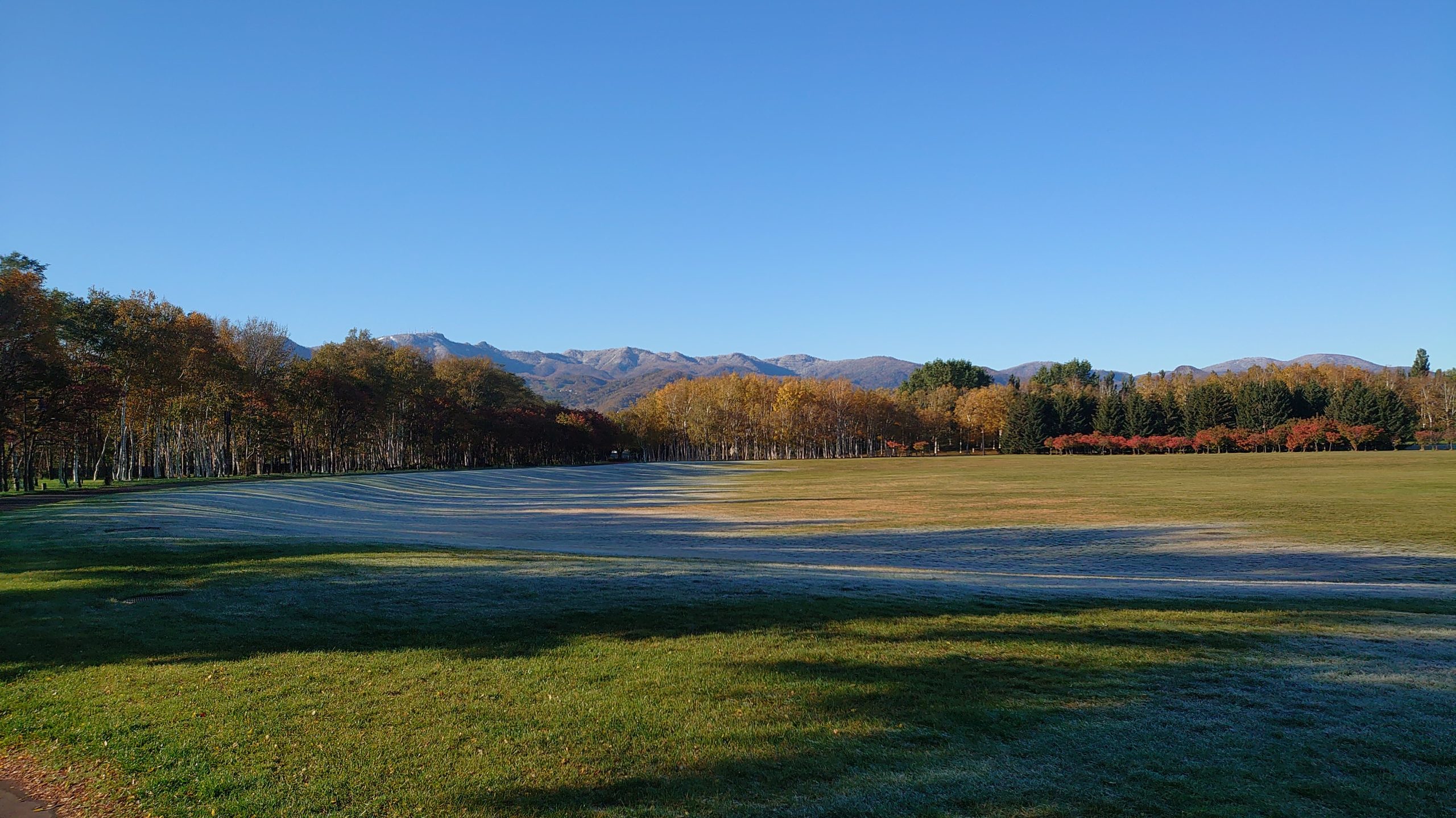 今朝は冷え込みが増し芝生広場は霜が降り白く染まっていました。 ポプラ並木の黄葉はまだまだですが、 カナールの水面に映ってきれいな写真が撮れました。 なお、カナールについては11月3日の清掃作業に向け、 10月31日より排水を行います。 水面に写るポプラ並木をご覧いただくのは、 今週末までとなりますのでご了承ください。 園内は紅葉が進み見頃を迎えております。 紅葉を見に前田森林公園に来てみてはいかがでしょうか。