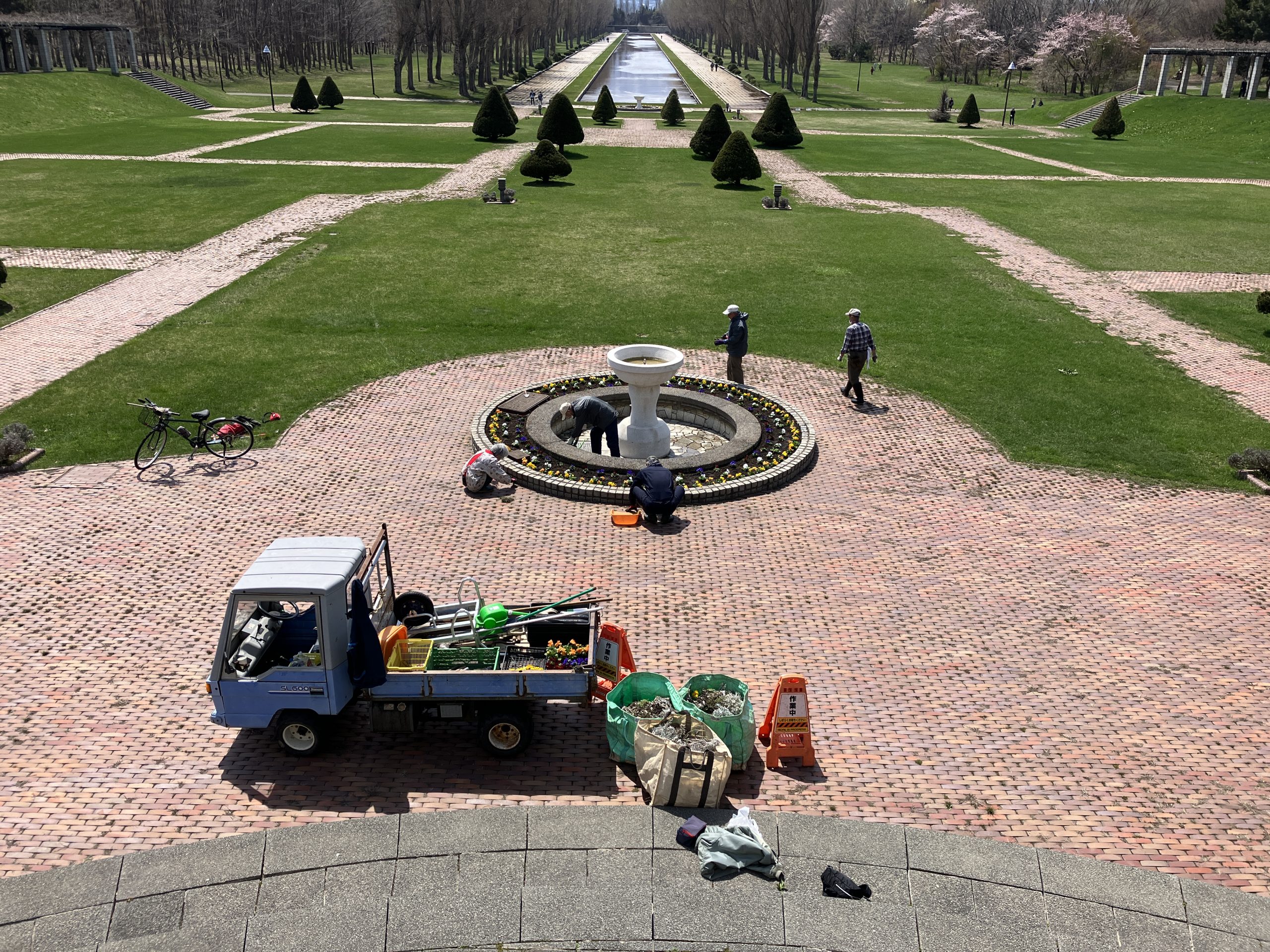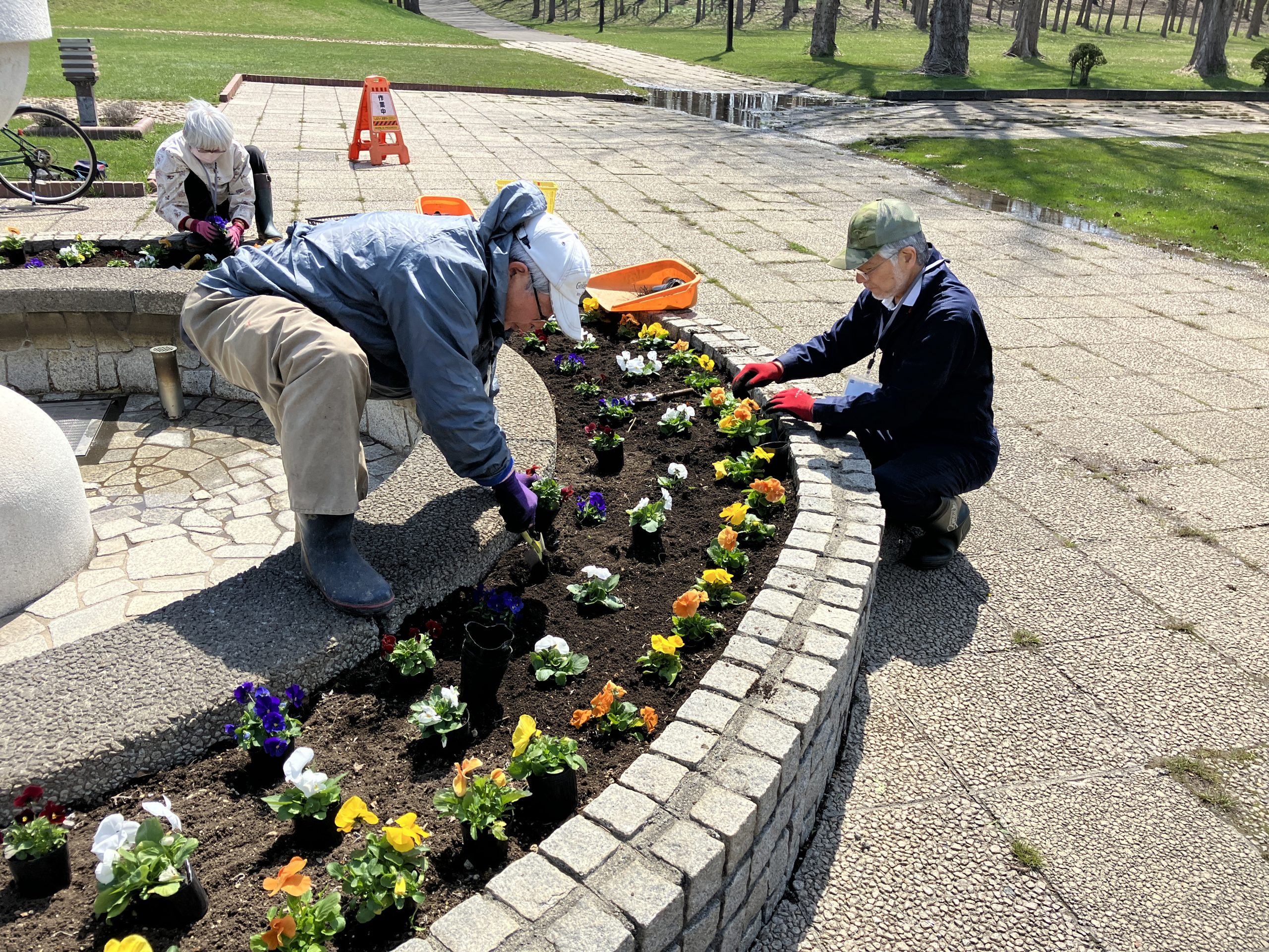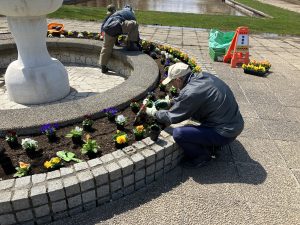 4月25日にサンクガーデン噴水周りにパンジー・ビオラを植えこみました!