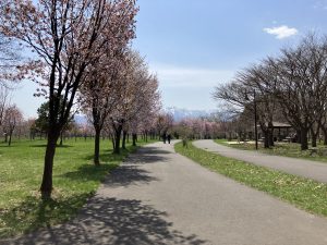 チシマザクラは6分程、八重桜はまだつぼみです。