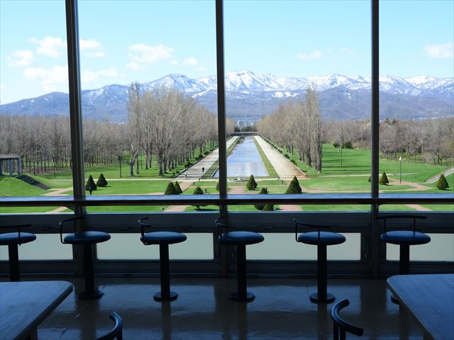 管理事務所前にて、焙煎珈琲が飲める「cafe 山ひこ」。手稲山を眺めながらの格別なロケーションをお楽しみいただけます。