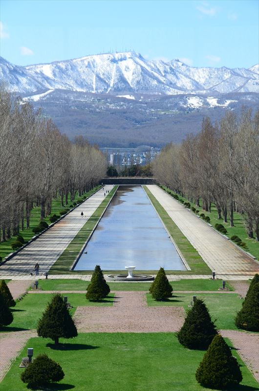 カナールの水面には手稲山・展望ラウンジが映ります。