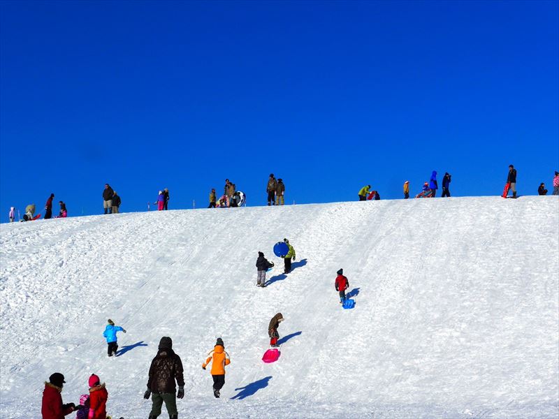 バーベキュー広場のある南エリア側にある小高い丘から、広場を一望できます。冬にはソリ遊びの雪山として子どもたちに人気のスポットです。 ※冬期は土日祝のみ駐車場を開放しています