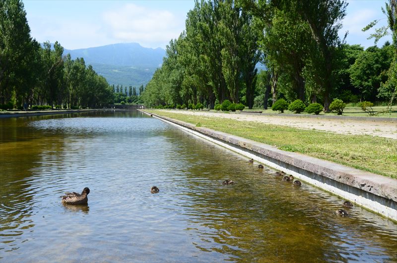 カナール両側に約200本程のポプラ並木が空を仰ぐ風景は異国情緒豊かに森林浴を感じられる場所です。